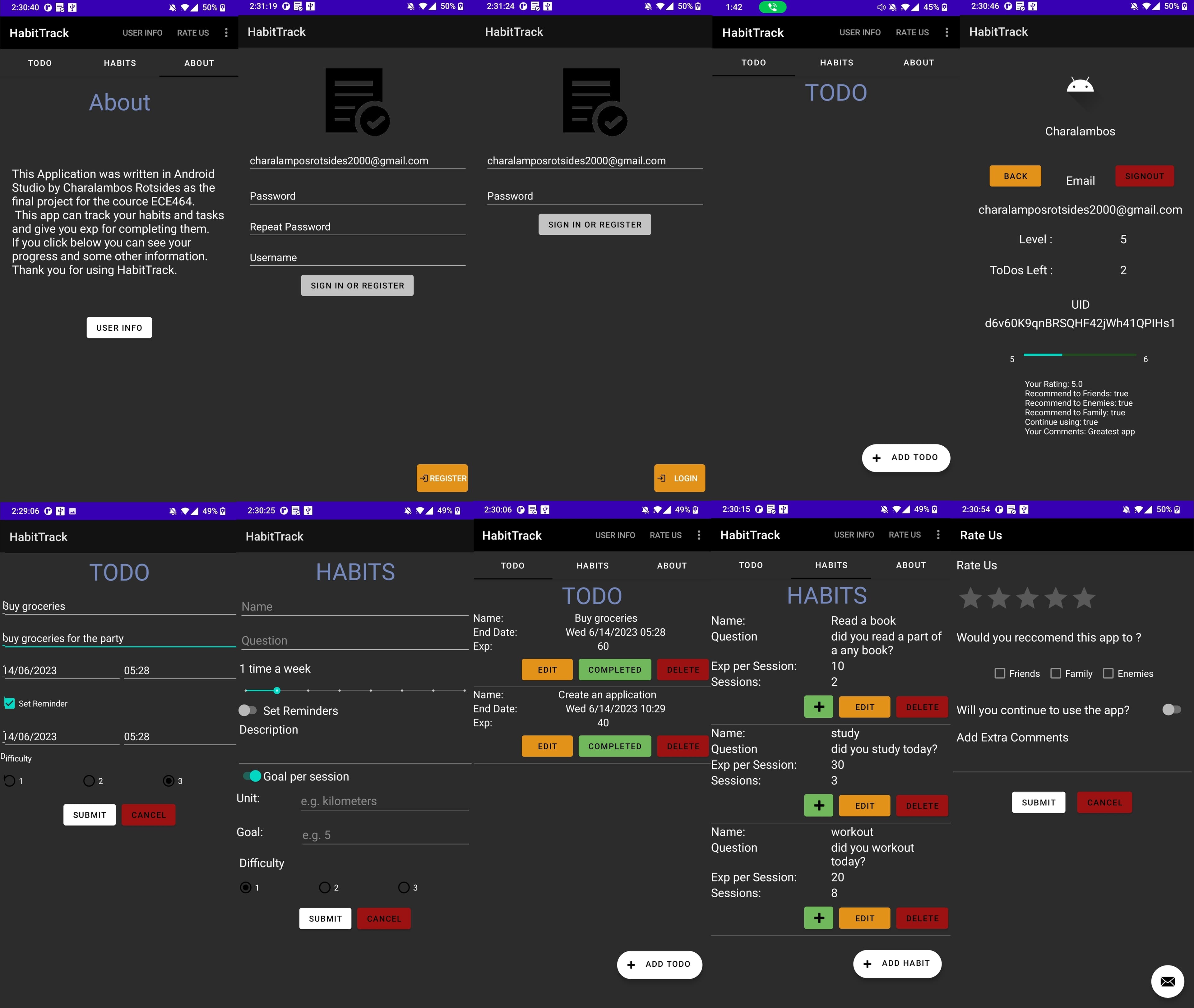 This project was the final project for the course ECE464. We had to create an application of our choise. I decided to create HabitTrack.