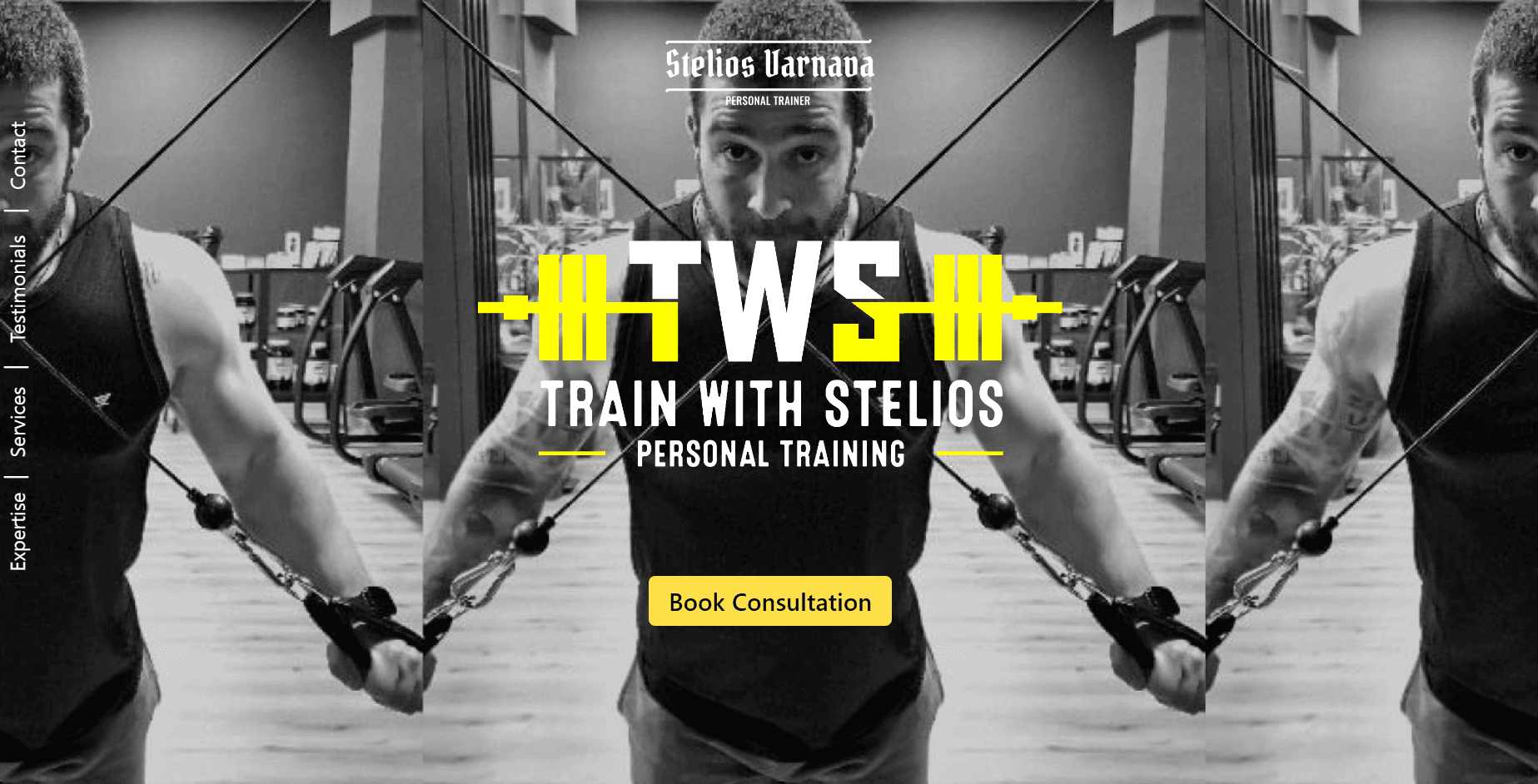 The website trainwithstelios is a straightforward tool I designed for a personal trainer. It was crafted using React JS for the interactive features and Tailwind CSS for its clean look.